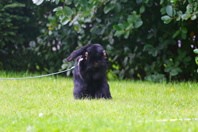 Vähän aikaa sitten Mellalle iski ensimmäinen valeraskaus ikinä. Se kuskasi kanilan nurkassa olevaan pesäänsä heinää, omia karvojaan, isoja fleecejä ja jopa yhden hihnan. Valeraskailun ekana päivänä koitin viedä sen tavallisesti ulkoaitaukseen vähän viilentymään ja unohtamaan turhat rakennustyöt, mutta ei. Neiti keräsi ulkoaitauksesta heinät suuhunsa, otti vähän vauhtia, loikkasi kepeästi 90cm aidan yli ja juoksi viemään heinät mökkiin. Olihan sille näylle nyt vähän pakko nauraa, mutta onneksi Mella taisi jo tajuta, ettei minijänöjä ole tulossa! Ja ei hätää, aitaukseen on jo viritetty katto... :D